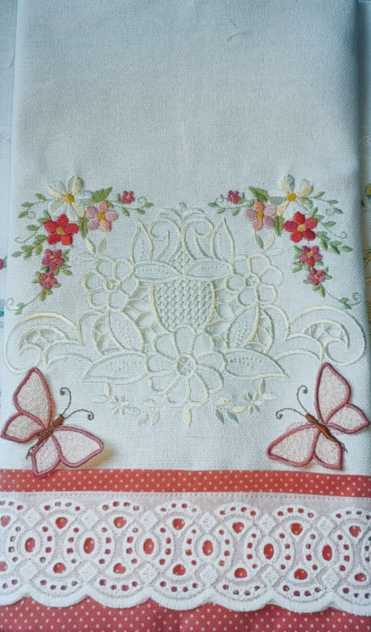 tecido estilotex branco, barrado em tricololine 100%algodão com opções de estampas, borboletas 3d,